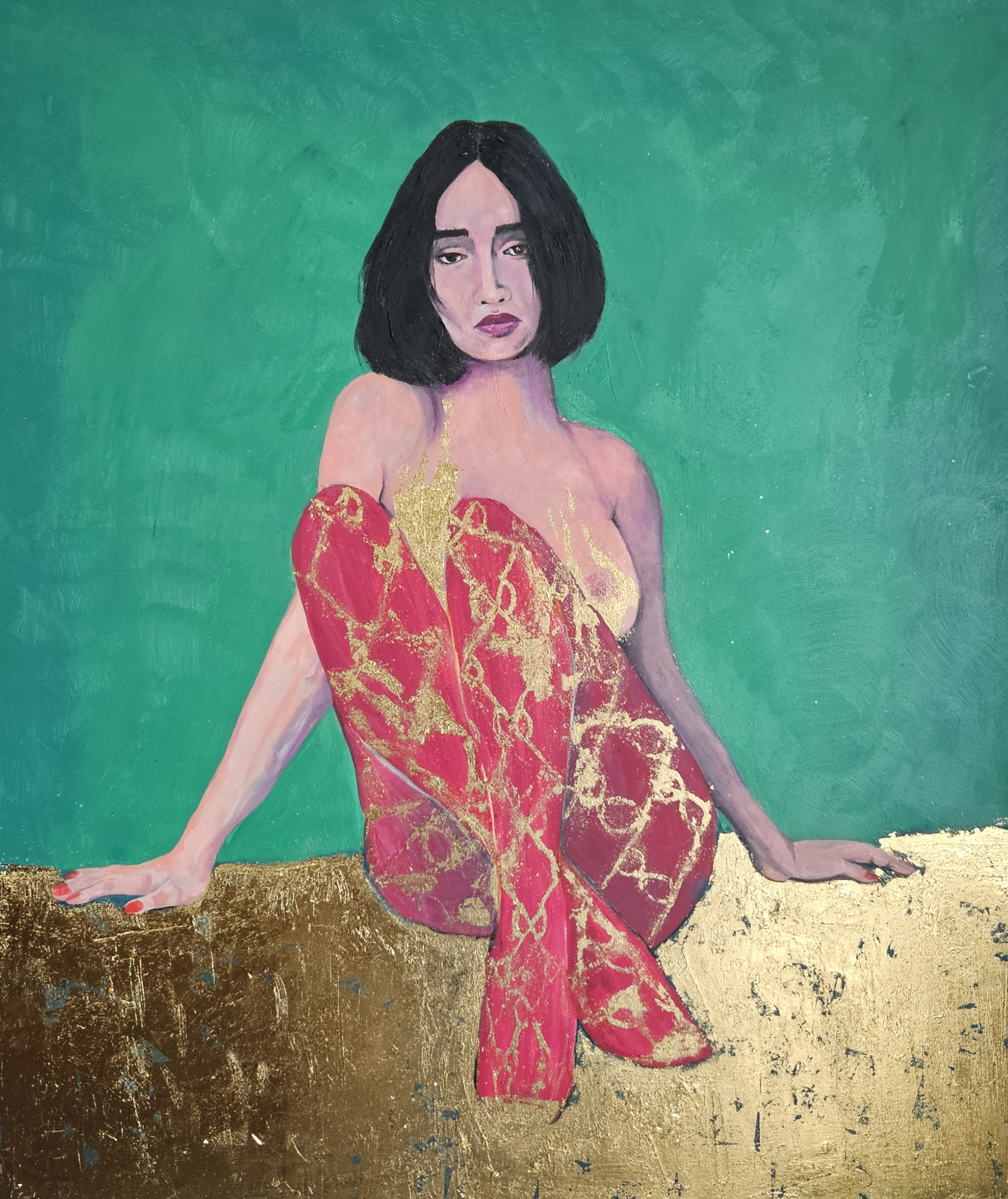 Dieses Werk ist das zweite Bild aus meiner Reihe „Die 7 Sünden“. Nach der Maßlosigkeit widme ich mich hier der Eitelkeit. Entstanden ist ein großformatiges Ölbild, veredelt mit feinem Blattgold.